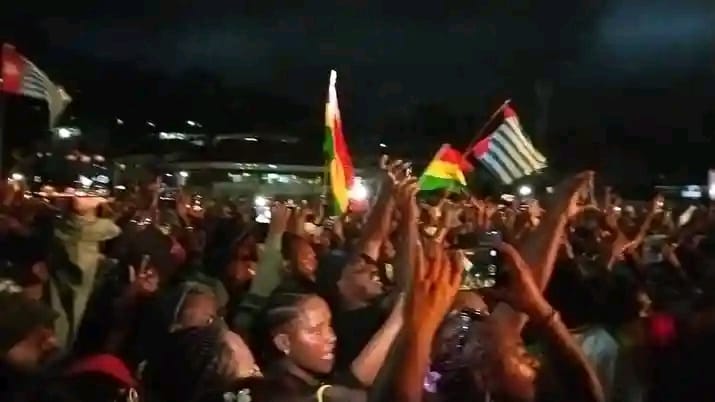 Jayapura(3/12/2025) – Konser Lucky Dube Band yang digelar di Lapangan Karang PTC (Papua Trade Center) berlangsung meriah sebelum sempat dihentikan sementara akibat insiden pengibaran dua bendera Bintang Kejora di tengah kerumunan penonton. Insiden itu terjadi ketika Lucky Dube Band tengah membawakan lagu “Back To My Roots.”