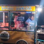 Naway dan gerobak jualan sagu bakarnya yang berlokasi di Basecam Cemara Sentani Timur, Kamis (18/9/2025).(Foto : Son David)