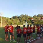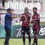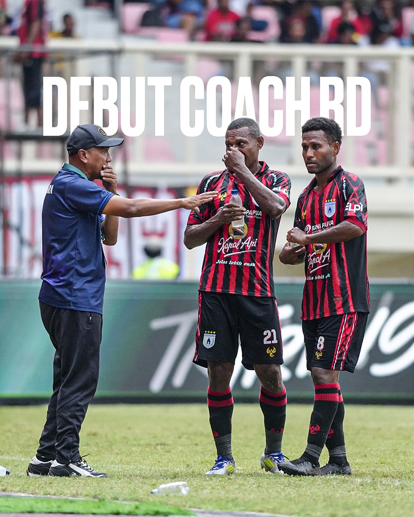 Pelatih Persipura, Rahmad Darmawan diskusi dengan pemainnya.