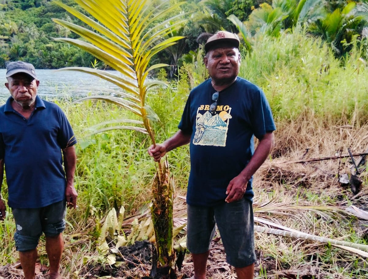 Ketua Yayasan Khouw Bersatu Papua, Kristian Epa, ketika menanam sagu di Dusun Enandoay Kampung Ayapo, Sabtu(27/9/2015).