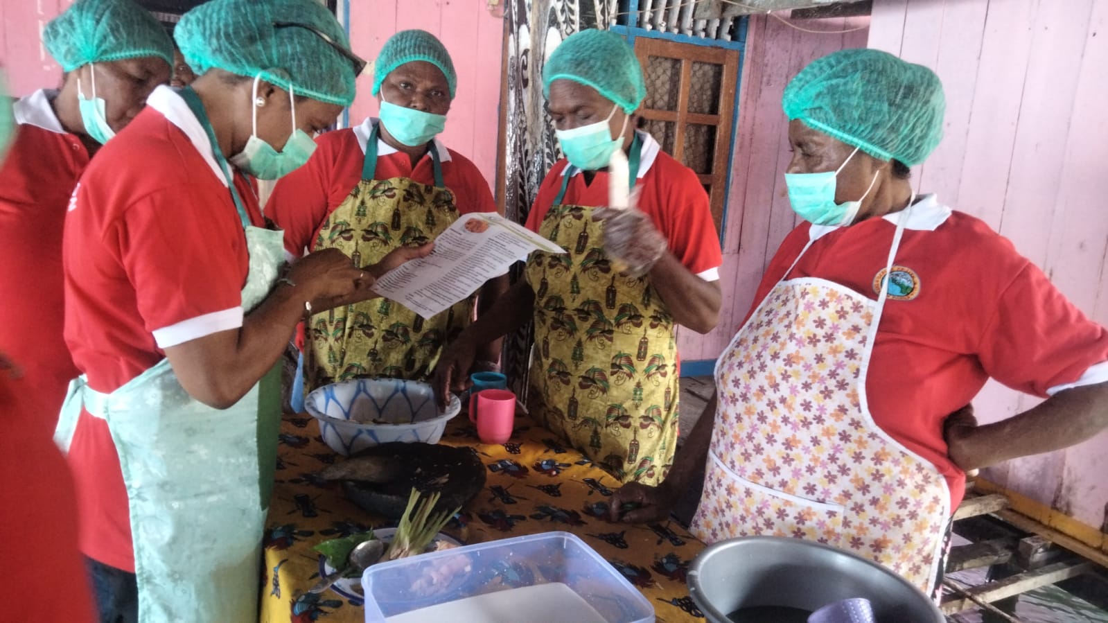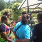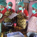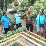 Mama-Mama tampak serius mendengarkan penjelasan Yuliana Helena Rumsarwir, SP.,M.Si , tentang cara merawat tanaman sayur.