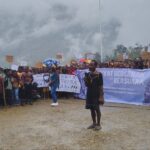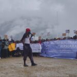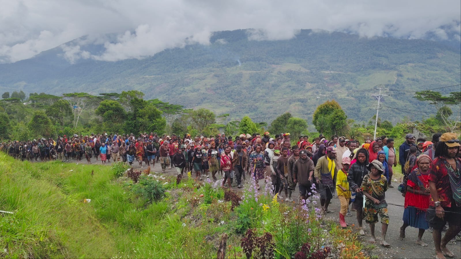Ribuan warga Kabupaten Intan Jaya menggelar long march dan aksi unjuk rasa ke Kantor Pemerintah Kabupaten Intan Jaya, Selasa (28/10/2025). Aksi damai yang dipimpin oleh anak-anak muda dari Forum Rakyat Bergerak itu menolak rencana eksploitasi tambang emas Blok Wabu.